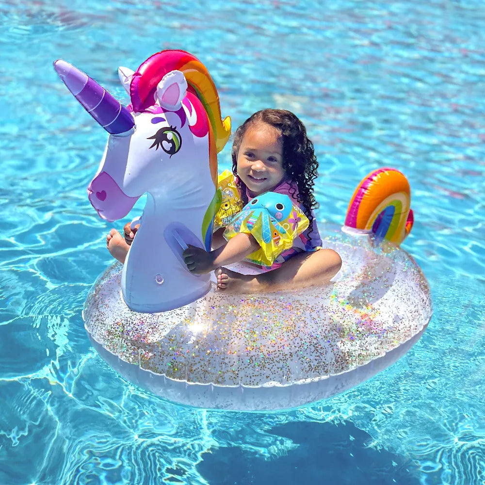 • POOL FUN: Add some joy and fun to your pool party. This Sparkly unicorn float will brighten up pool and beach activities with plenty of smiles. Great swim toy to ride for kids in the hot summer day